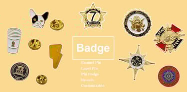 Exquisite metal badges for events or branding, customizable with unique finishes and designs.