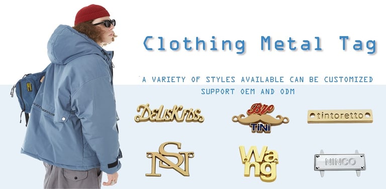 Premium metal clothing labels, customizable for unique brand designs, adding durability and elegance.