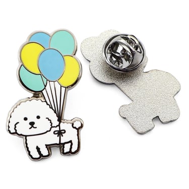 Discover our collection of pins, badges, and fridge magnets crafted with exquisite soft enamel technology. Take a look at this adorable brooch featuring a cute poodle holding colorful balloons, a perfect example of our fine craftsmanship. The soft enamel process gives each piece vibrant, long - lasting colors and a smooth, slightly recessed finish that not only looks appealing but also adds to the durability.