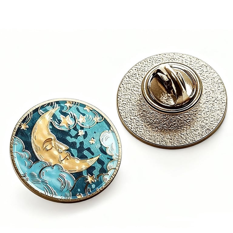 Vintage Moon and Stars Enamel Pin: Unique Celestial Brooch for Accessories