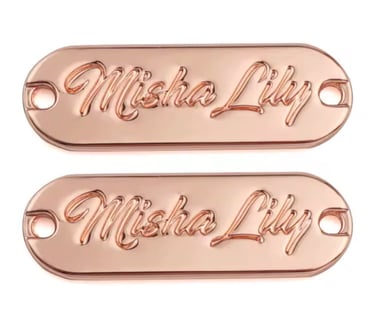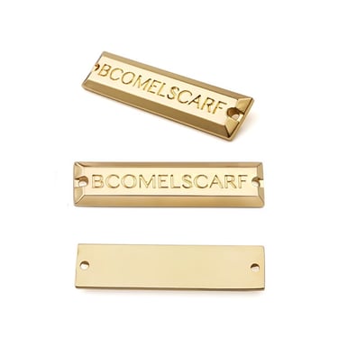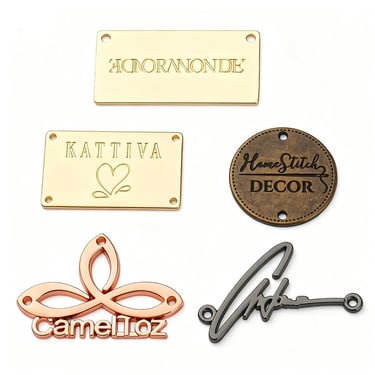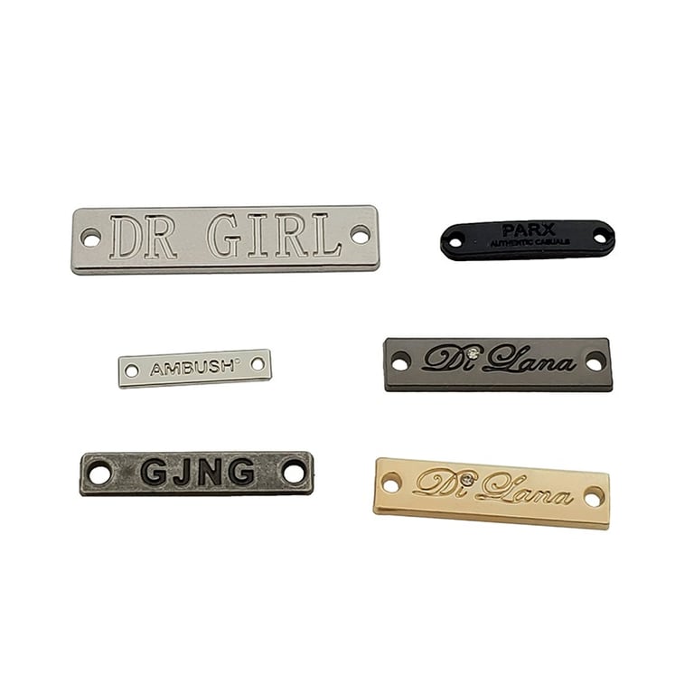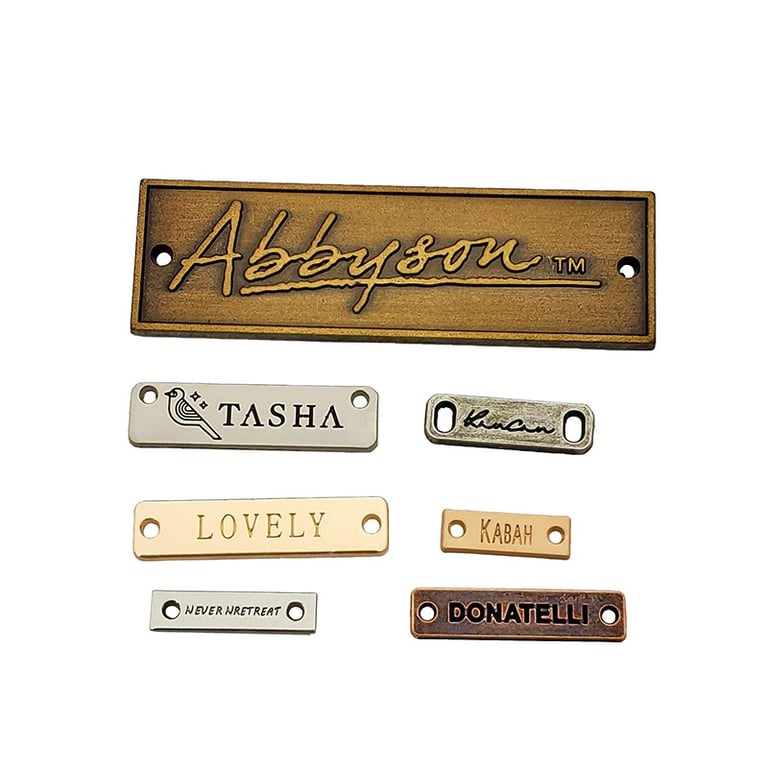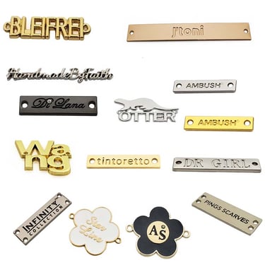 Zinc alloy cast labels featuring fine polishing and bright plating. A high-quality choice for garments, handbags, shoes, and custom accessories.