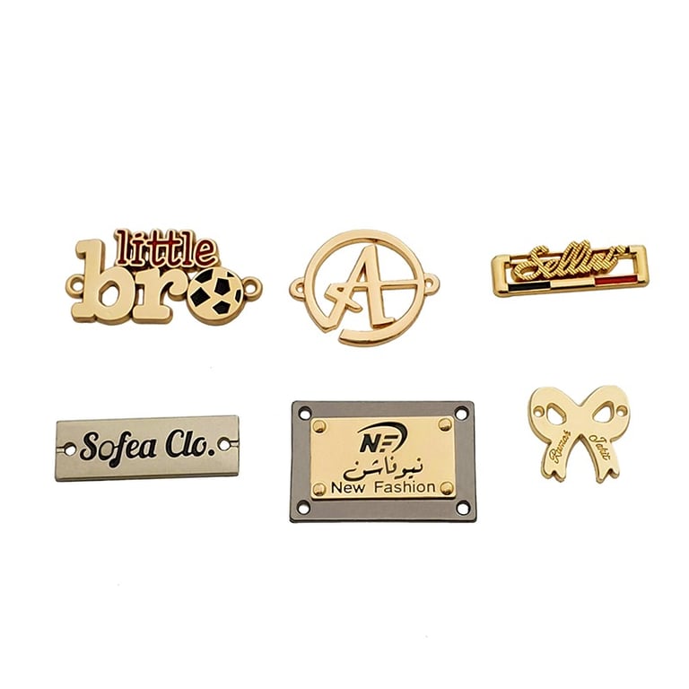 Premium die-cast zinc alloy labels with high-gloss electroplating, enamel filling, and smooth polishing. Suitable for clothing, bags, packaging, and fashion accessories.